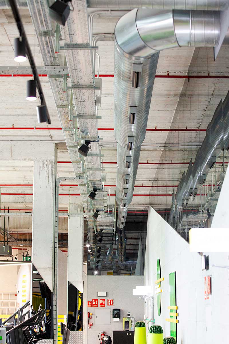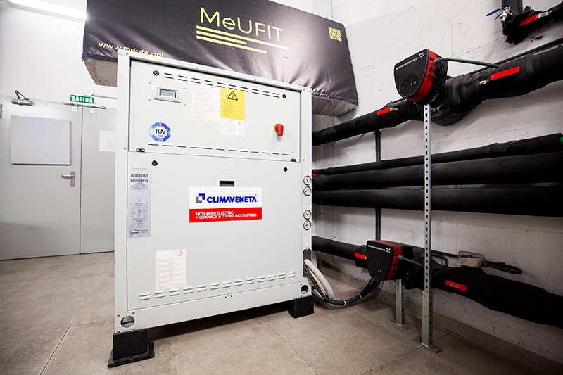 Gimnasio Meufit en el centro comercial Vialia de Vigo, en este centro deportivo realizamos las instalaciones de climatizacion mediante bombas de calor agua agua y fancoils tipo Cassette y de conductos, producción de agua caliente mediante bomba de calor de alta temperatura, ventilación con recuperadores independientes por sala. Todo ello controlado y monitorizado con Automatas programables de la marca Omrom con control en remoto y avisos via e-mail para averías, consumos y monitorización de los distintos parámetros a controlar, como temperaturas, niveles de co2 y humedad. Así mismo maximizamos el rendimiento energético, produciendo calor y frio al mismo tiempo, almacenando la energía en los distintos depósitos de inercia.